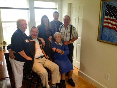 DownloadThe York County Elder Abuse Task Force was able to grant Maine's current oldest resident, Millie Remmie, her wish. Millie has always adored the Bush family and had wanted to meet Bush Sr. before her lifetime was up. Our "Wishing Well" received a nomination for Millie and our wheels started turning immediately. With the generous help from Chief MacKenzie from the Kennebunk Police Department, the wonderful Nomination from Lodges in Springvale, a beautiful wrist corsage from Blooms and Heirlooms, the US Secret Service and President G.W. Bush, Sr himself, we made Millie's dream come true!